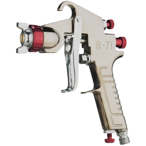 [B]Spray Guns[B] Stainless steel needle and nozzle to accomodate a variety of coatings Brass air cap and adjustable knob Includes adjustable fluid, pattern and air controls Designed to provide equal automization and particle size for all kinds of surface painting Lightweight, ergonomic design and easy trigger pivot to reduce operator fatigue